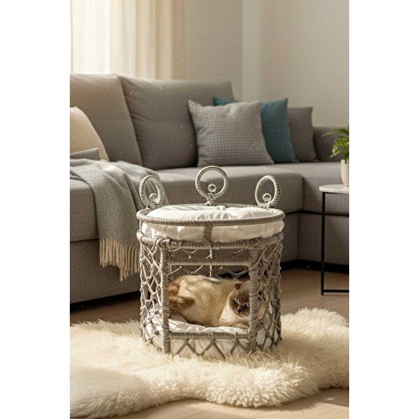 İki katlı yapısı sayesinde kediniz ister yüksek katta keyif yapsın ister alt katta güvenle uyusun; bu kedi ranzası ona özgür bir yaşam alanı sunar. Ürünümüz tamamen el işçiliği ile yapılmış olup iskelet kısmını tamamen metaldir. Uzun yıllar kullanabileceğiniz sağlamlıkta ve dayanıklı yapıdadır. Üç adet kristal taş ile süslenmiş olup evinize şıklık katacak estetiğe sahiptir. İç oturum 44*44*44cm dir. (Kristaller kargoda kırılma riskinden dolayı paket içinde gelip çakmakla ısıtılarak monte edilir)