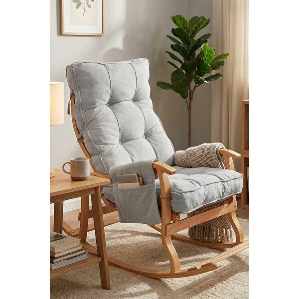 Dinlenmek, rahatlamak ve konforlu bir alan oluşturmak için dekorasyonunuzun en önemli parçaların biri olan mobilyalardır. En dinlendirici model olan sallanan sandalye, fonksiyonel baba koltuğu modelleri en çok tercih edilen modeller arasında yer almaktadır. Konforu, kalitesi, şıklığı ve rahatlığı ile çok memnun kalacağınızı iddia ediyoruz. Dayanıklılık ve konforu beraberinde getiren Reyo Santorini Sallanan Sandalye ile günün tüm yorgunluğunu atma garantisi veriyor. Kolay taşınabilme özelliği sayesinde ev içerisinde farklı odalara taşıma konusunda size yormaz. Dinlenme Koltuğu sadece ev içerisinde değil aynı zamanda terasınızda, balkonunuzda da şık bir görüntü elde edebilirsiniz. Aynı zamanda Berjer görevi de gören bu sandalye ağacın sıcak rengi kumaşın bej rengiyle birlikte doğal bir görünüm sağlamaktadır. Çekici görüntüsüyle dikkat çeken tv koltuğu modeli ile kendine kitap köşesi oluşturabilirsiniz. Tasarımıyla evinize farklılık katacak bu model Şömine yanında da farklı bir hava katabilirsiniz. Gazete, kitap veya kumanda aksesuarları için yan cep detayları oldukça pratiktir. Gürgen ağaçından üretilen bu sallanan sandalyeye bayılacaksınız. Kaliteli malzemelerle tasarlanan bu ürünü uzun yıllar kullanabilirsiniz. Sallanan emzirme koltuğu olarakta kullanılan bu modelimiz bebeğinizle ilgilenirken konfor ve pratiklik sağlar. Hem anne hem de bebeği için rahat bir ortam oluşturur. Santorini Sallanan emzirme koltuğu, hem bebeğinizi emzirirken rahat olmanızı sağlayacak hem de sakinleştirici sallanma hareketiyle bebeğinizi sakinleştirmenize yardımcı olacak. Farklı minder renklerine ve 50 cm oturma alanına sahip olan Santorini Sallanan Sandalye Açık Gri kapitone minderi ile salonunuza modern bir hava katarken, kolay silinebilme özelliğiyle kullanıcıların beğenisini topluyor. Kumaşın nefes alabilen özel yapısı sayesinde yazın serin, kışın vücut ısınızı dengede tutacaktır. Gürgen ağacı malzemesinden üretilen iskelet uzun yıllar formunu kaybetmez.