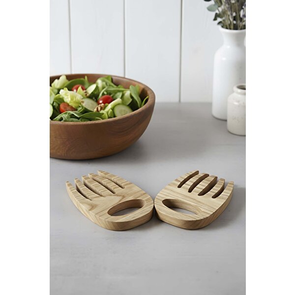 Ahşap 2'li Salata Karıştırma, Servis Çatalı %100 Kestane Ağacı