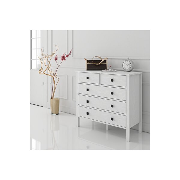 Sakura Ahşap Hunerika Ancona 5 Çekmeceli Şifonyer-wood Beyaz-minifiks Bağlantılı