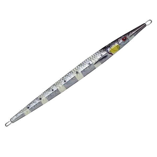 Needle Jig, zargana balığının mükemmel metal bir taklididir! Uzun ince gövde inanılmaz bir uzaklığa atış yapar ve su içinde çok az dirence sahiptir. Geometrik profili sayesinde, sahte suda düşerken seğirtir, parlayıp söner, çok düzensiz aksiyon özelliğine sahiptir. Gövde, jigging sırasında saldırgan balıkları uzaktan kendine çeken bir tıklama sesi gönderen bir çelik çıngırağa sahiptir. Needle Jig sahtesinin çok amaçlı aksiyonu ile maksimum verim alın: Dikey Jigging, Kıyıdan Jigging, At Çek Jigging ve Slow Jigging.