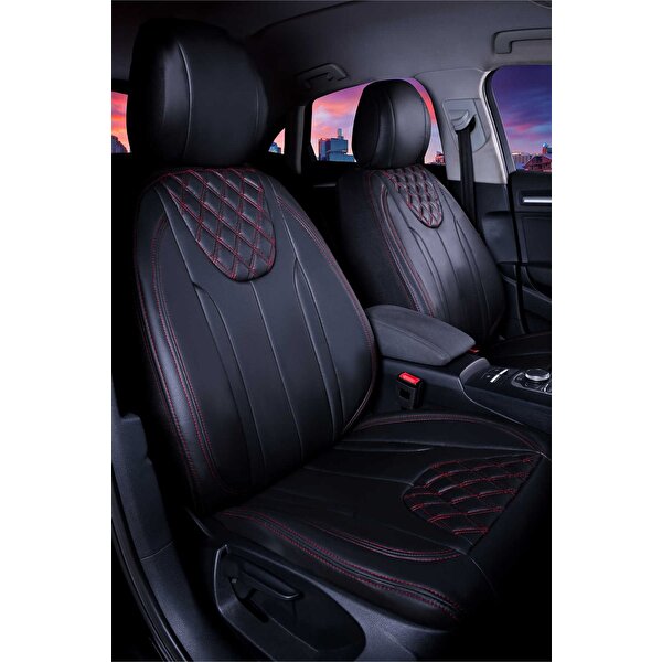Seat Leon Fr Uyumlu Lüx Deri Oto Koltuk Kılıfı Ön Arka Takım İron Si̇yah Kirmizi Siyah-Kırmızı