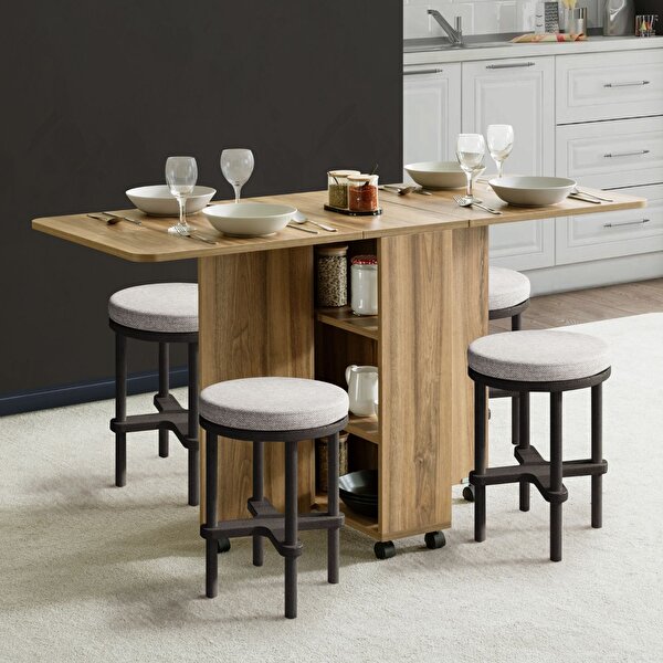Setay Mobilya Blesk Arden Katlanabilir Tekerlekli Çok Amaçlı Yemek Masası – Raflı Ve Portatif Tasarım