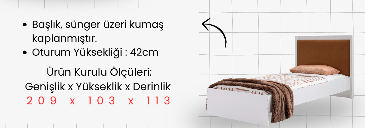 Setay Mobilya Karyola, Beta Başlıklı Karyola 100x200