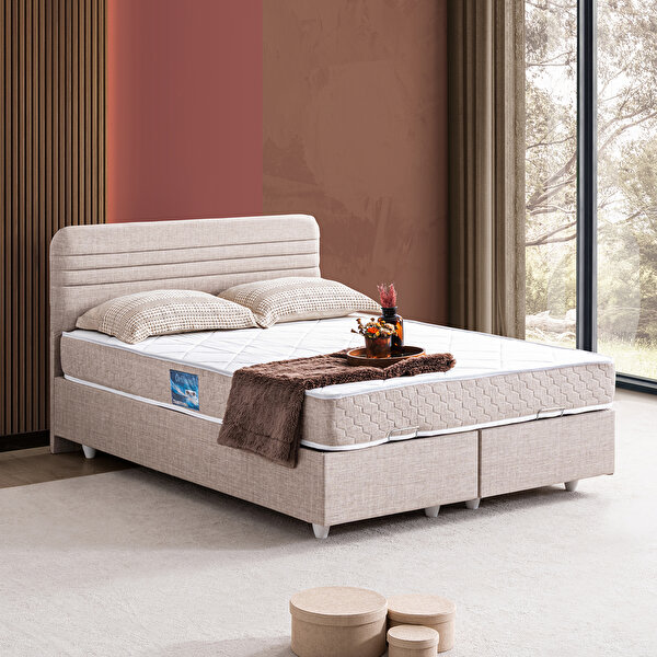 Setay Mobilya Mila İkili Set, Mila Çift Kişilik Baza Başlık Seti - Krem 160x200 cm