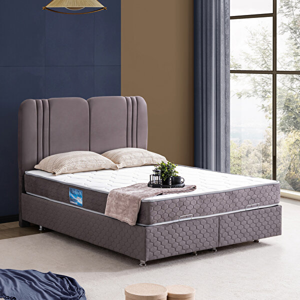 Setay Mobilya Paul Çift Kişilik Baza Başlık Orthosoft Yatak Seti - Antrasit 160x200 cm