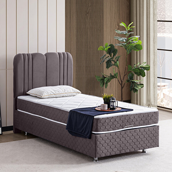 Setay Mobilya Paul Tek Kişilik Baza Başlık Orthosoft Yatak Seti - Antrasit 90x200 cm