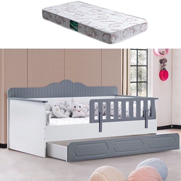 Setay Mobilya Yavrulu Karyola, Flower Yavrulu Montessori Karyola - Gri + 1 Adet Comfort Yatak
