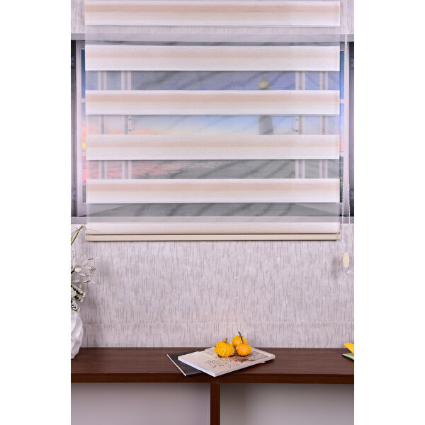 Setekshome Bej Kendinden Desenli Etek Dilimsiz Ds 11717-v1 Zebra Stor Güneşlik Perde 200x200 cm