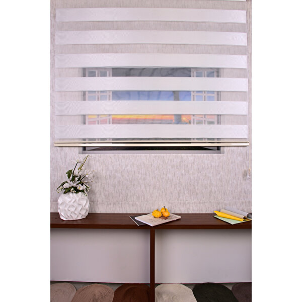 Setekshome Krem Kendinden Desenli Etek Dilimsiz Ds 10738-v4 Zebra Stor Güneşlik Perde 100x220 cm