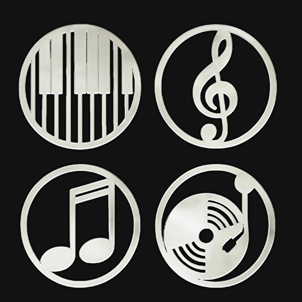 Şirin Lazer Nota Piyana Gümüş Renk Aynalı Pleksi Müzik Odası Duvar Dekorasyonu