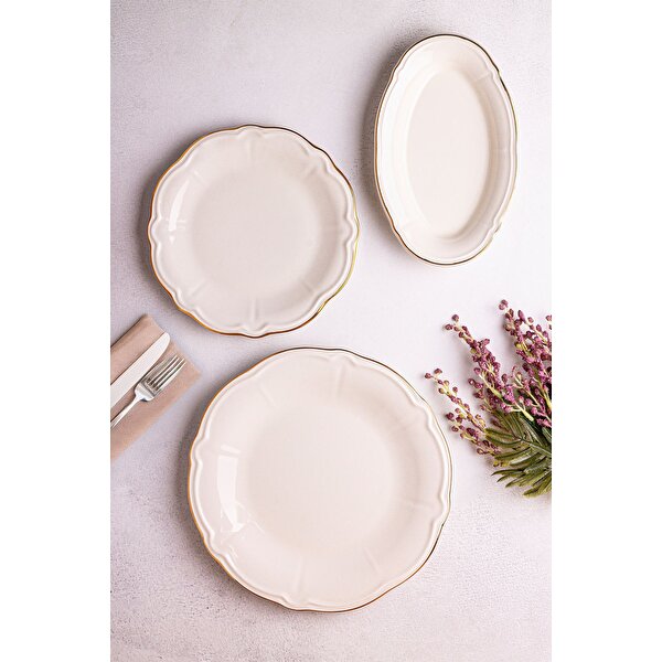 Snippy Vesta - 18 Parça 6 Kişilik Gold Porselen Yemek Takımı Porselen Gold Altın Yaldızlı Yemek Seti