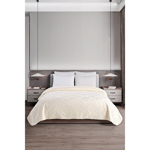 Soley Belura | Çift Kişilik Emboss Battaniye & Yatak Örtüsü | Ekstra Yumuşak | 200x220 1140 Krem