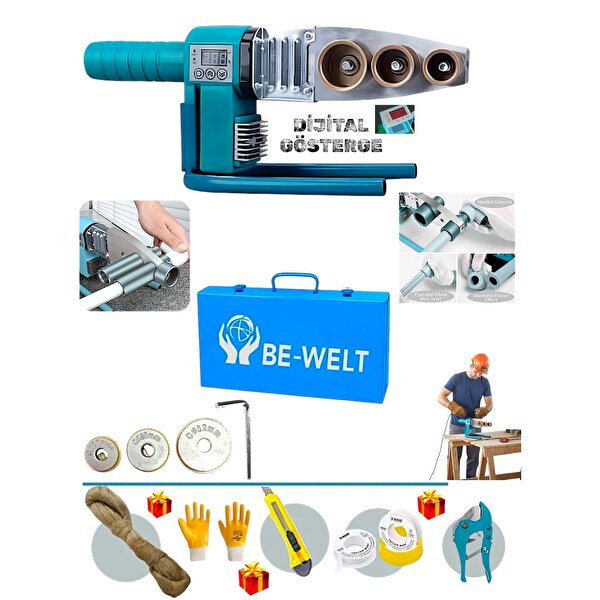 Hedi̇yeli̇ Di̇ji̇tal Göstergeli̇ Elektri̇kli̇ + 3 Adet Paftali Plasti̇k Boru Kaynak Maki̇nasi