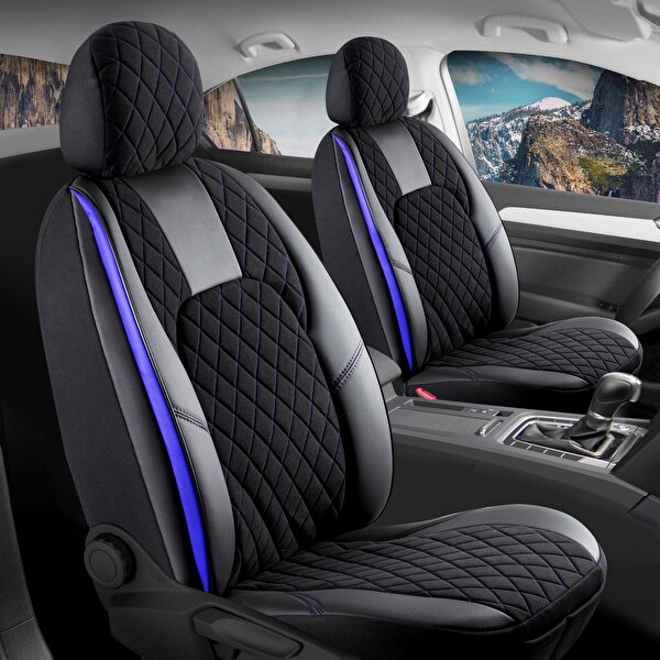 Startcar Bmw 3 Serisi 318is Uyumlu Yarı Deri Oto Koltuk Kılıfı Ön Arka Set Chester Model Siyah Mavi