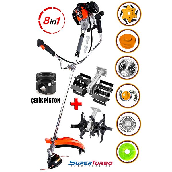 Staxx Alman 20hpx Benzinli Yan Tırpan Ot Çalı Biçme Toprak Çapalama Makinesi 2 Çapa Başlıklı 8 Parça Set