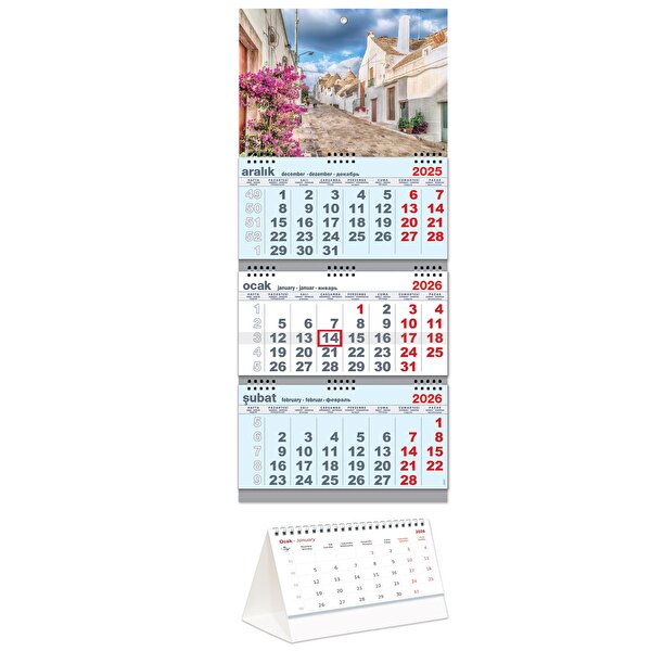 2026 Sokaklar Piramit Masa Takvimi Masaüstü Takvim 21x17 cm