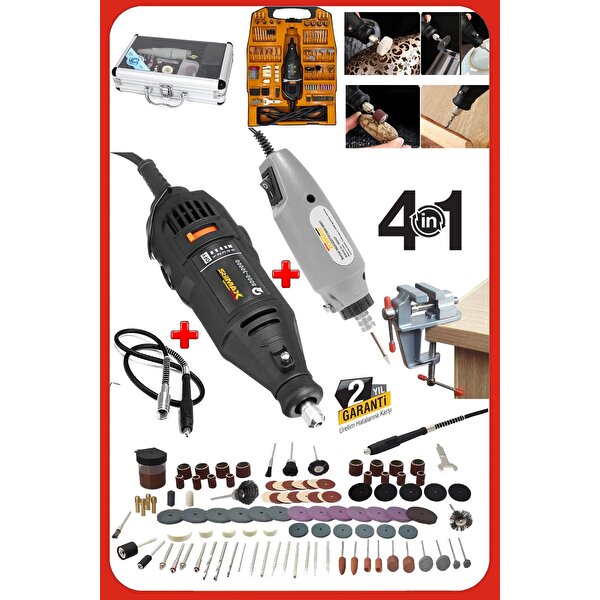 STILMAX Çift Çok Amaçlı Gravür Profesyonel 4in1 Set: 362 Parça Aksesuar 500w Gravür Hobi Taşlama Mengene Set