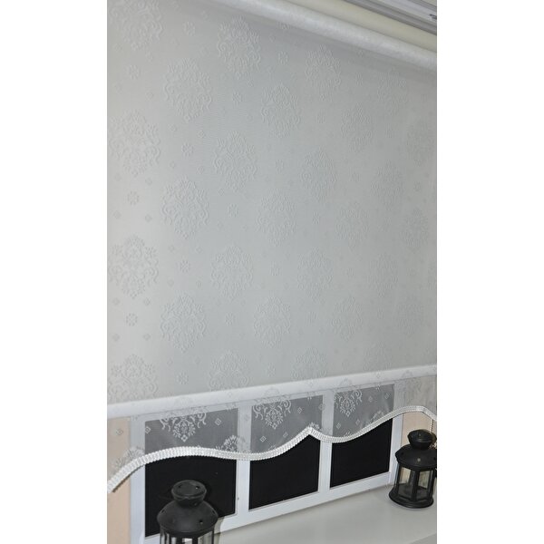 StorBurada Çift Mekanizmalı Kirli Beyaz Damask Tül Perde Ve Ekru Stor Perde Stb45252-v01 50x200 cm