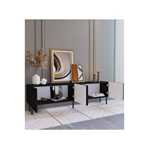 SuBahome Şık Ve Minimalist 160 Cm Demir Ayak Siyah Tv Ünitesi - Ideal Ebatlarla Modern Tasarım