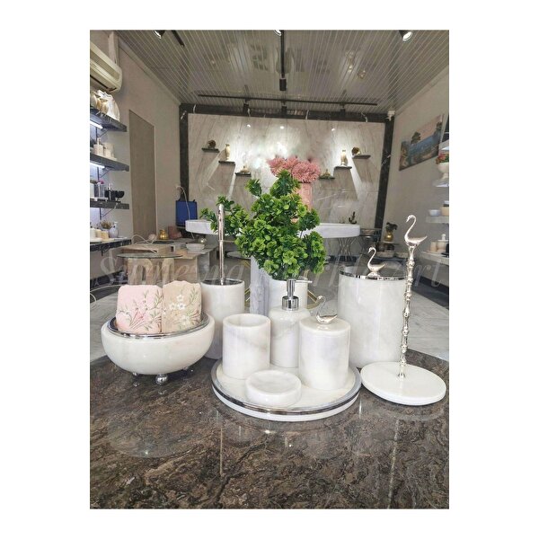 Doğal beyaz mermer malzemesiyle üretilmiş, banyonuza zarif bir dokunuş katıyor; 10 parçadan oluşan set, banyonuzda ihtiyacınız olan tüm parçaları tek bir pakette sunuyor; Mermer havlu kasesi, hem şıklığı hem de işlevselliği bir arada sunarak banyo ritüellerinizi daha keyifli hale getiriyor; Mermer kuğu havluluk, modern ve estetik tasarımıyla banyonuzun atmosferini zenginleştiriyor; Silver rengi detaylarıyla sofistike bir görünüm sağlayarak banyonuzun dekorasyonuna zarafet katıyor;