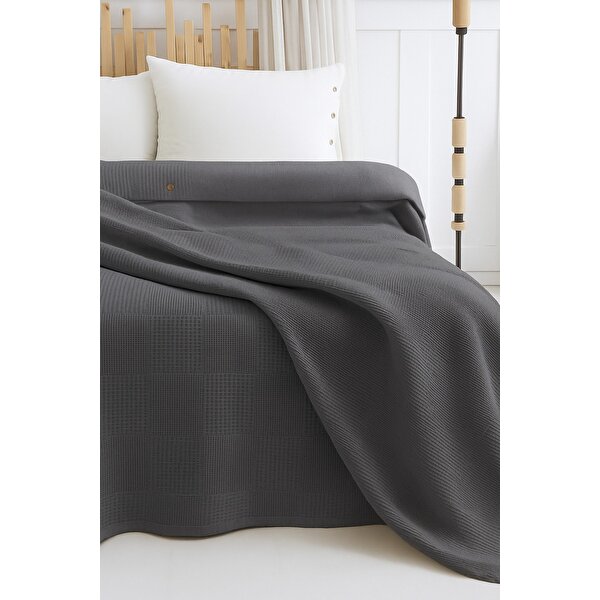 Suvay %100 Pamuklu Çift Kişilik Yatak Örtüsü Pike, Petek Desen Mint Yeşili Renkli Pike Antrasit