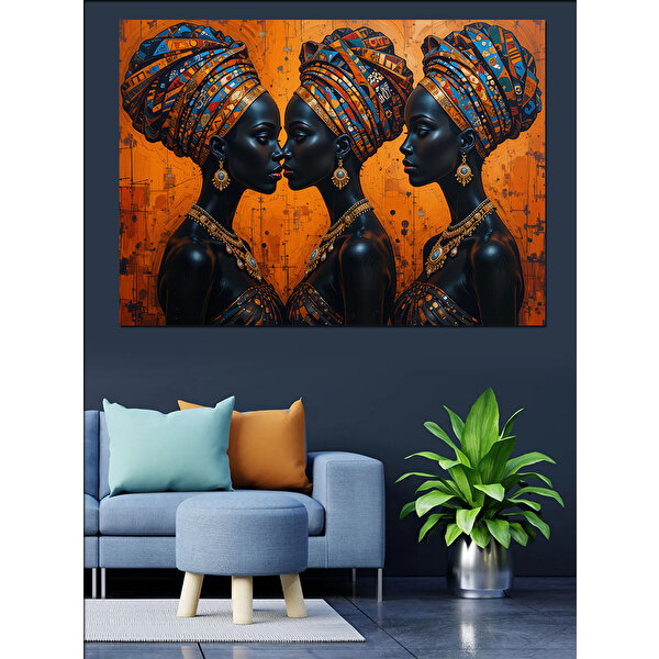 Tablomega Afrikalı Kadınlar Geleneksel Başlıklarla Dekoratif Kanvas - Mdf Ahşap Tablo 50x70 cm