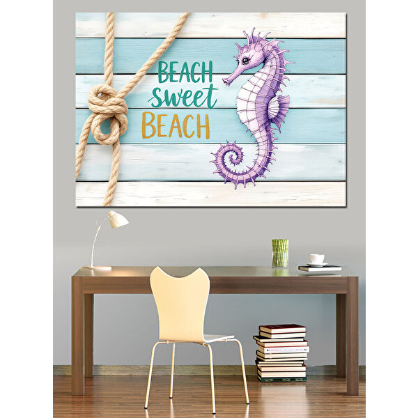 Tablomega Ahşap Üzerinde Denizatı Motifi Dekoratif Kanvas - Mdf Ahşap Tablo 25x35 cm
