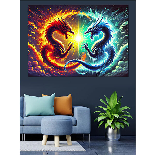 Tablomega Alevler İçinde Ejderha Dekoratif Kanvas - Mdf Ahşap Tablo 25x35 cm