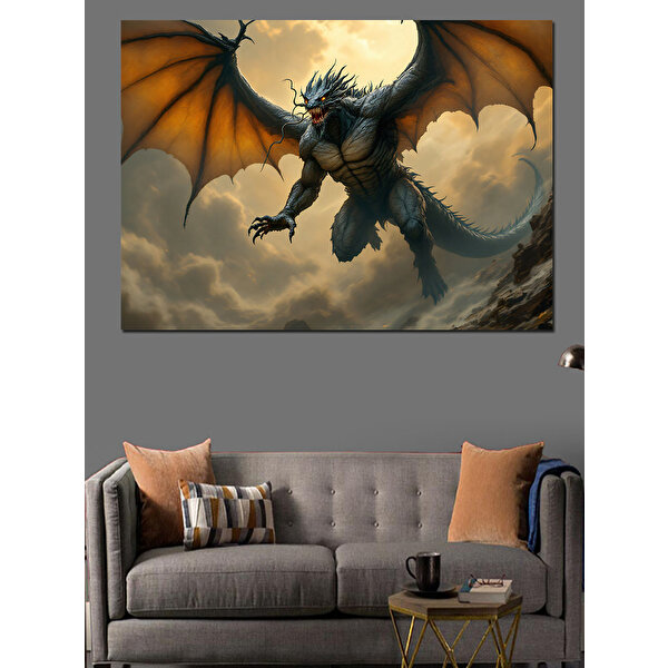 Tablomega Alevler İçinde Ejderha Dekoratif Kanvas - Mdf Ahşap Tablo 70x100 cm