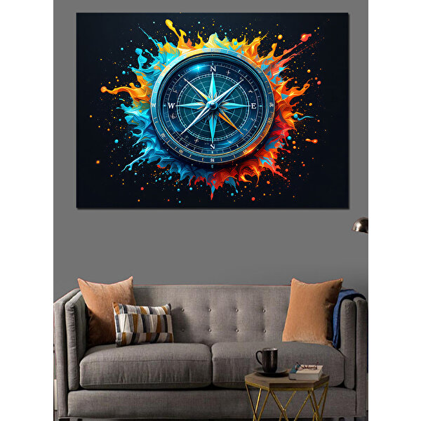 Tablomega Alevler İçinde Pusula Dekoratif Kanvas - Mdf Ahşap Tablo 35x50 cm