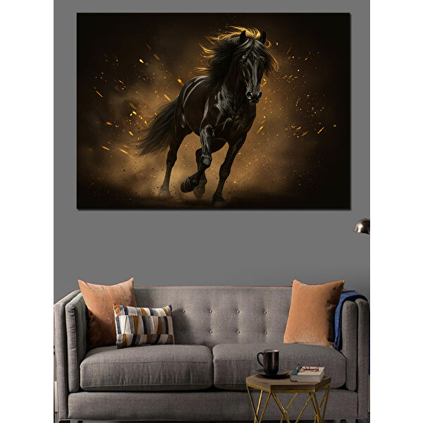 Tablomega Alevler İçinde Siyah At Dekoratif Kanvas - Mdf Ahşap Tablo 100x140 cm