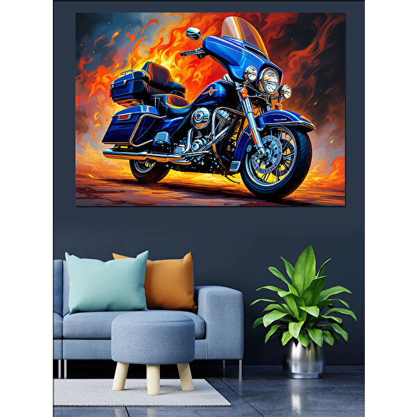 Tablomega Alevli Hızlı Mavi Motosiklet Dekoratif Kanvas - Mdf Ahşap Tablo 50x70 cm