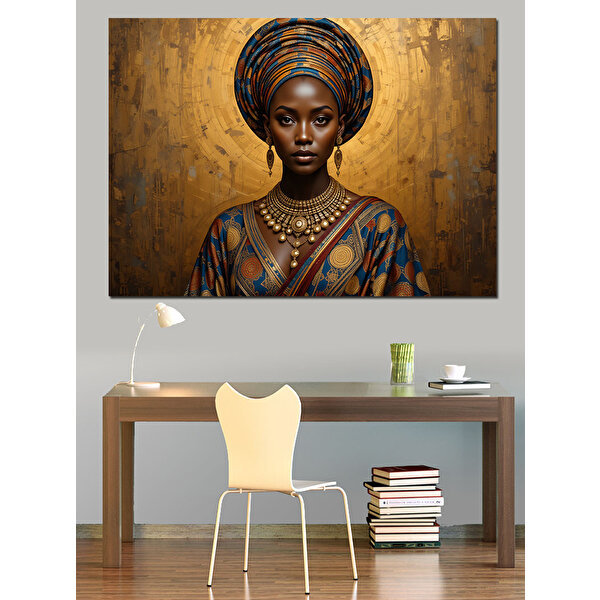 Altın Arka Plan Kadın Dekoratif Kanvas - Mdf Ahşap Tablo