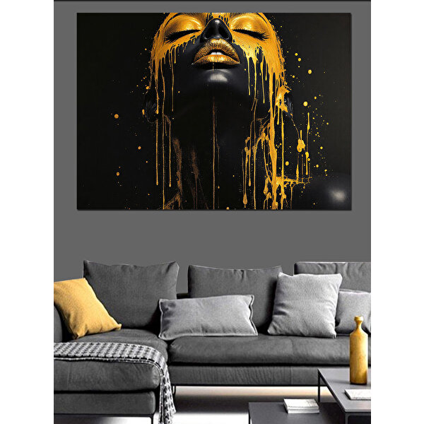 Tablomega Altın Boyalı Yüz Portresi Dekoratif Kanvas - Mdf Ahşap Tablo 70x100 cm