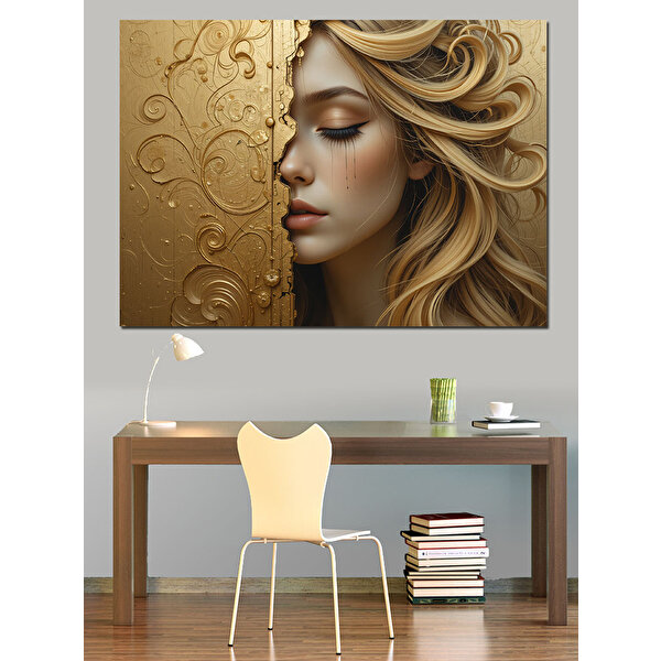 Tablomega Altın Desenli Kadın Portresi Dekoratif Kanvas - Mdf Ahşap Tablo 50x70 cm