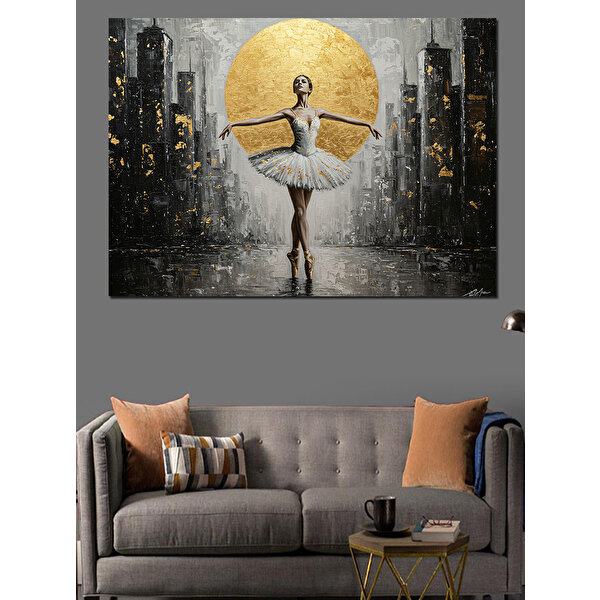 Tablomega Altın Işıkta Balerin Dekoratif Kanvas - Mdf Ahşap Tablo 100x140 cm
