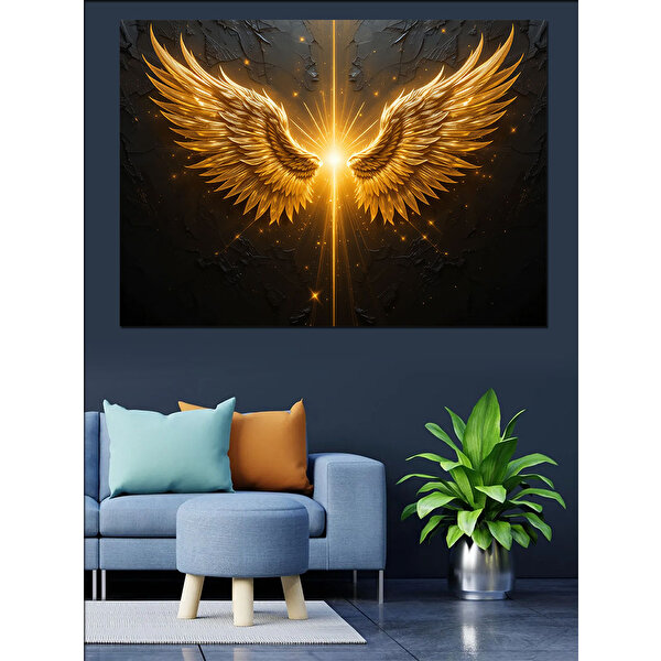 Tablomega Altın Parlayan Kanatlar Dekoratif Kanvas - Mdf Ahşap Tablo 35x50 cm