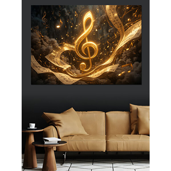 Altın Parlayan Nota Sembolü Dekoratif Kanvas - Mdf Ahşap Tablo