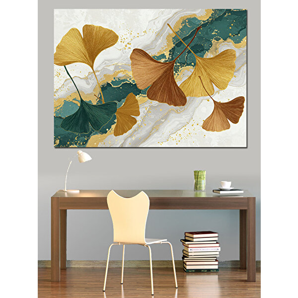 Altın Renkli Ginkgo Yaprakları Dekoratif Kanvas - Mdf Ahşap Tablo