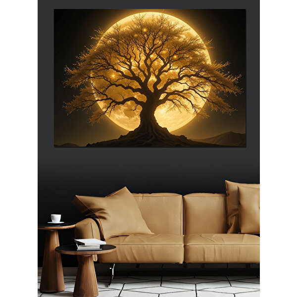 Tablomega Altın Sarısı Büyülü Ağaç Dekoratif Kanvas - Mdf Ahşap Tablo 100x140 cm