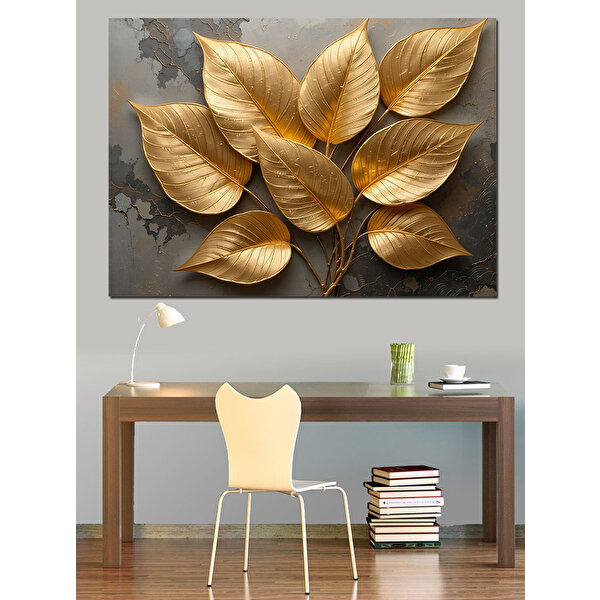 Tablomega Altın Yapraklı Siyah Arka Plan Dekoratif Kanvas - Mdf Ahşap Tablo 100x140 cm