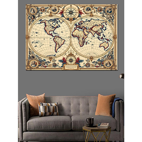 Antik Dünya Haritası Dekoratif Kanvas - Mdf Ahşap Tablo