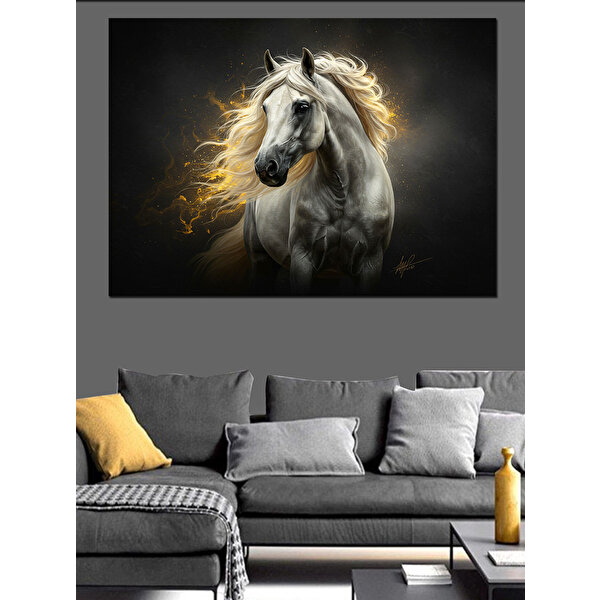 Ateş Yeleli Beyaz At Dekoratif Kanvas - Mdf Ahşap Tablo