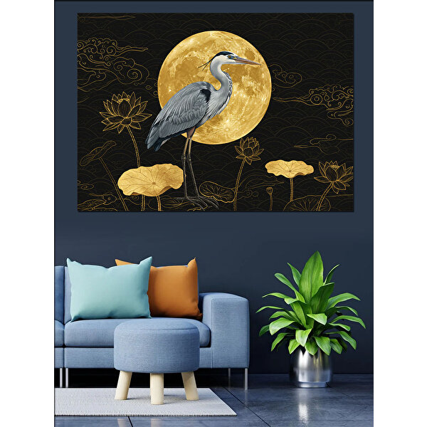 Ay Altında Turna Kuşu Dekoratif Kanvas - Mdf Ahşap Tablo