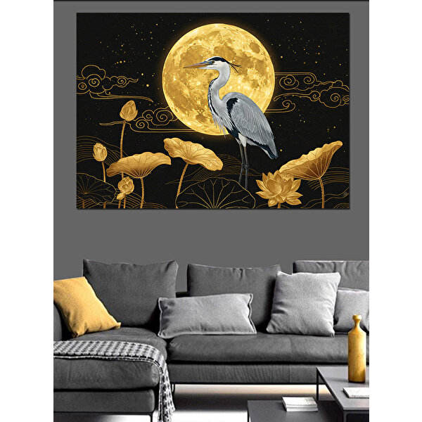 Tablomega Ay Işığında Balıkçıl Kuş Dekoratif Kanvas - Mdf Ahşap Tablo 100x140 cm