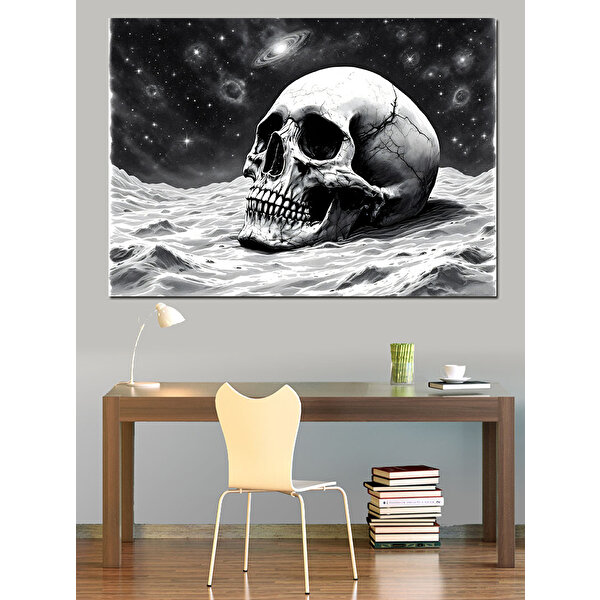 Ay Işığında Kafatası Dekoratif Kanvas - Mdf Ahşap Tablo