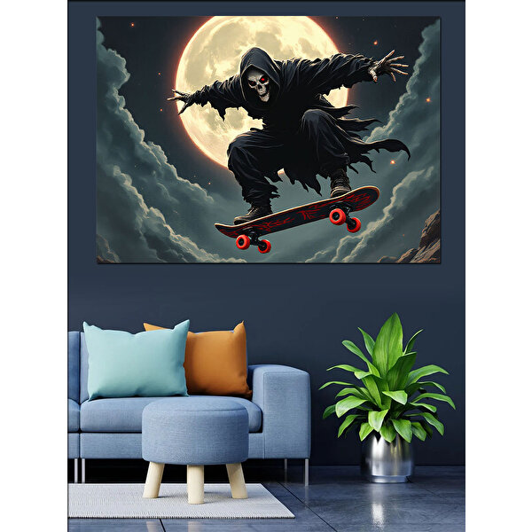 Ay Işığında Kaykaylı Ölüm Dekoratif Kanvas - Mdf Ahşap Tablo