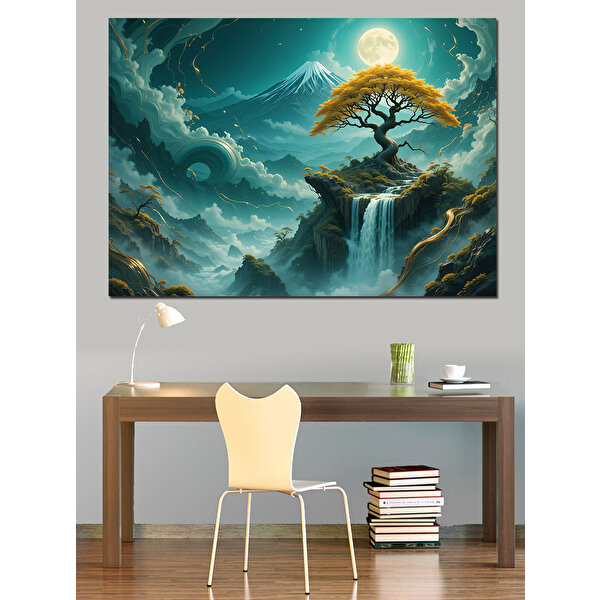 Tablomega Ay Işığında Yalnız Ağaç Dekoratif Kanvas - Mdf Ahşap Tablo 100x140 cm