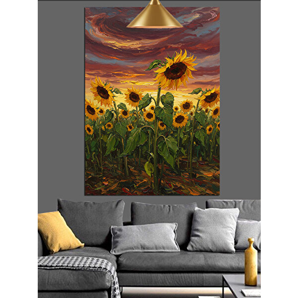 Tablomega Ayçiçekleri Gün Batımı Dekoratif Kanvas - Mdf Ahşap Tablo 50x70 cm